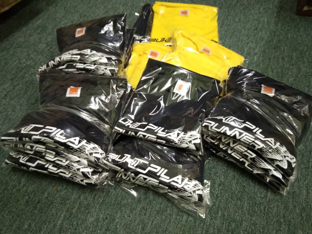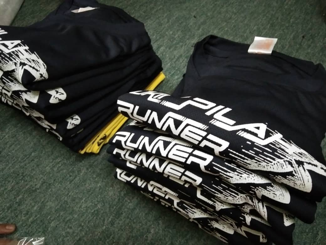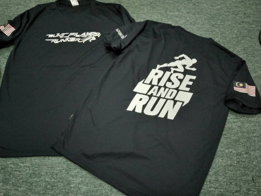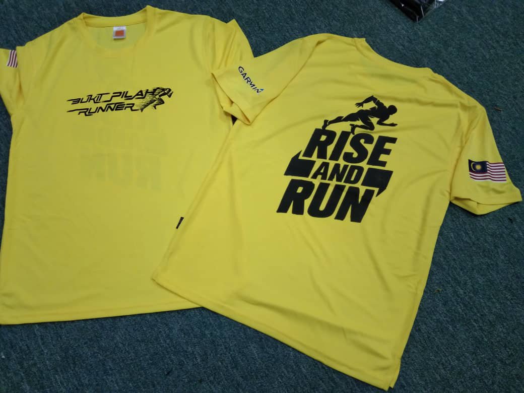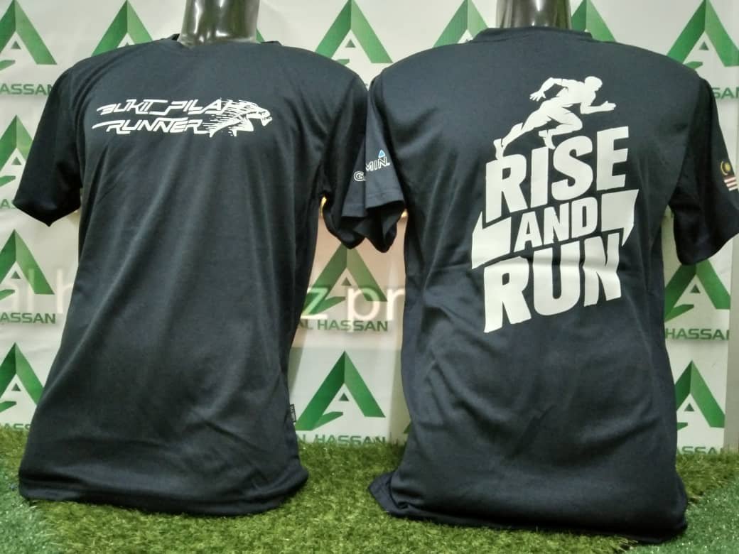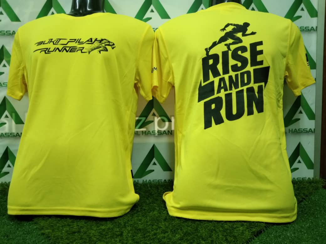 Baju material microfiber, cetakan 4 bahagian. Cetak depan, belakang, kiri & kanan lengan.