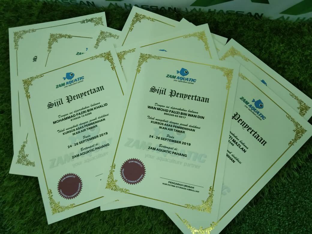 Permintaan dari pelanggan kami, mereka buat tempahan sijil. Sijil siap cetak logo, detail maklumat penerima sijil.