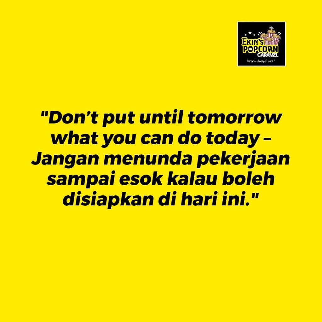 Don’t put until tomorrow what you can do today – Jangan menunda pekerjaan sampai esok kalau boleh disiapkan di hari ini.