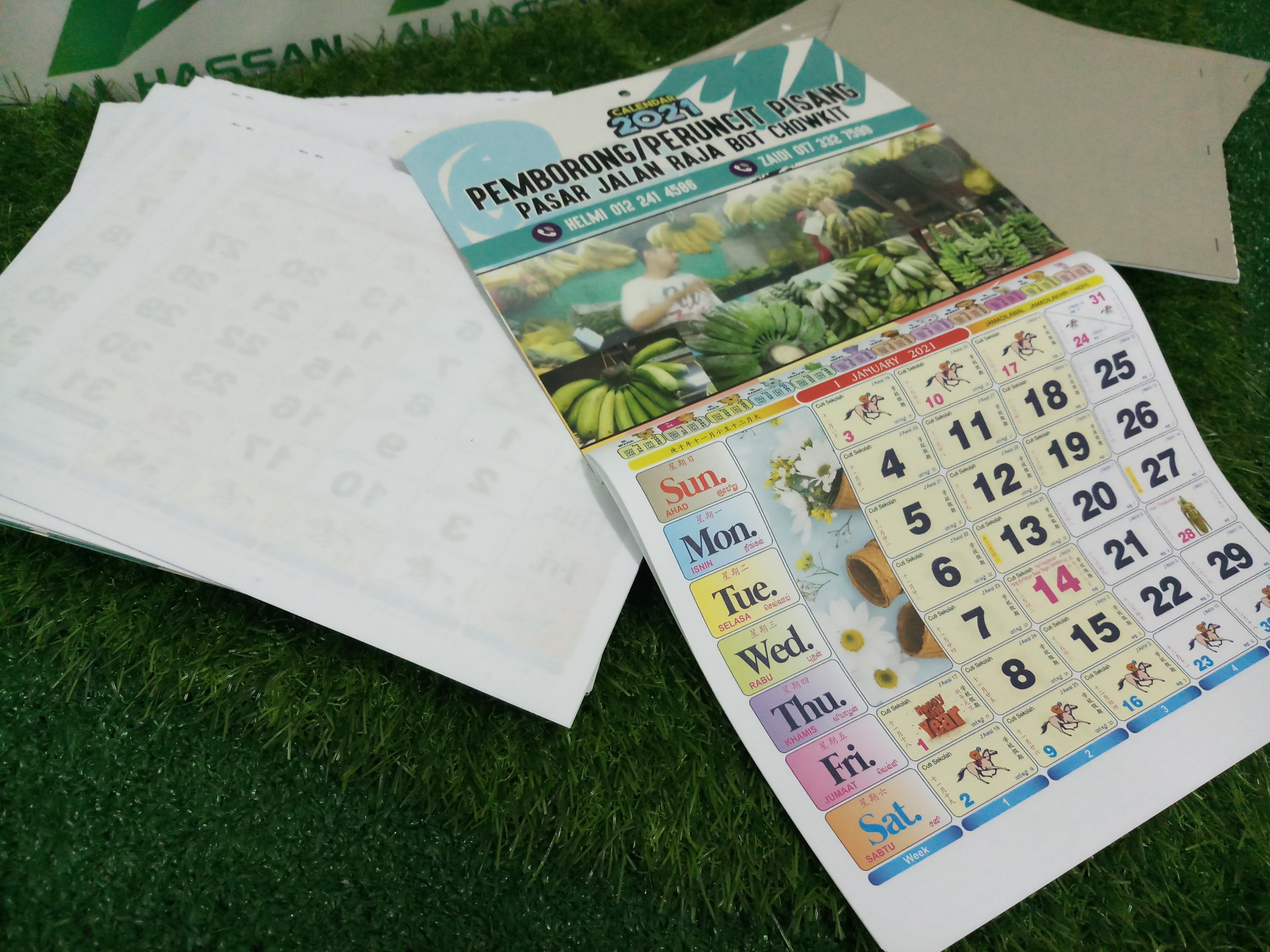 Boleh custom ikut design kita punya sendiri. Owner bisnes..boleh letak maklumat bisnes, produk, perkhidmatan kalian dalam HEADER kalendar.