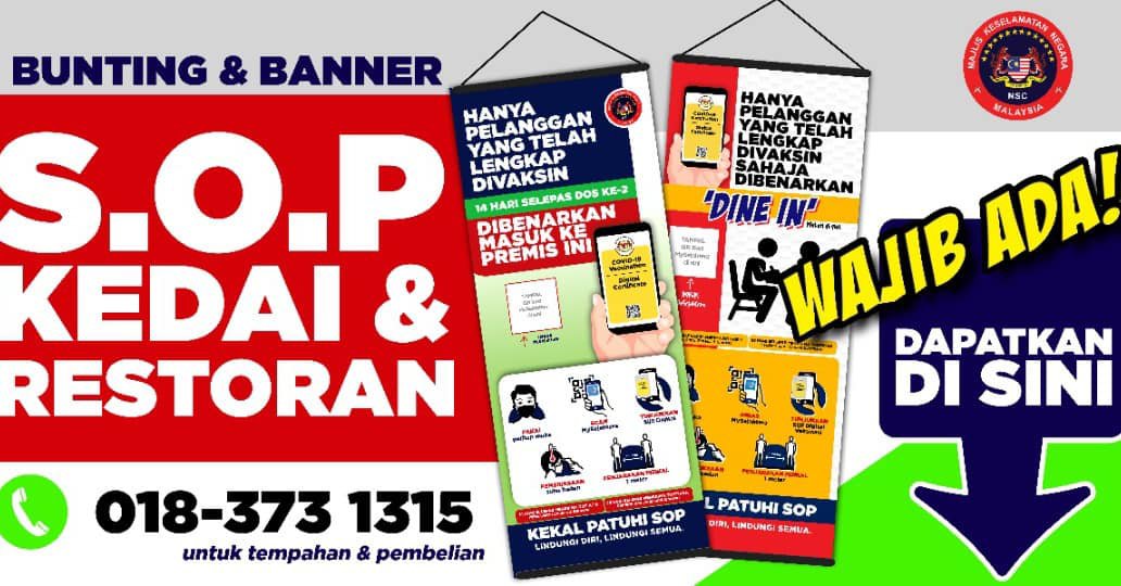 BANNER & BUNTING S.O.P KEDAI DAN RESTORAN. Design kami sudah sediakan, kalian hanya tinggal pilih sahaja.