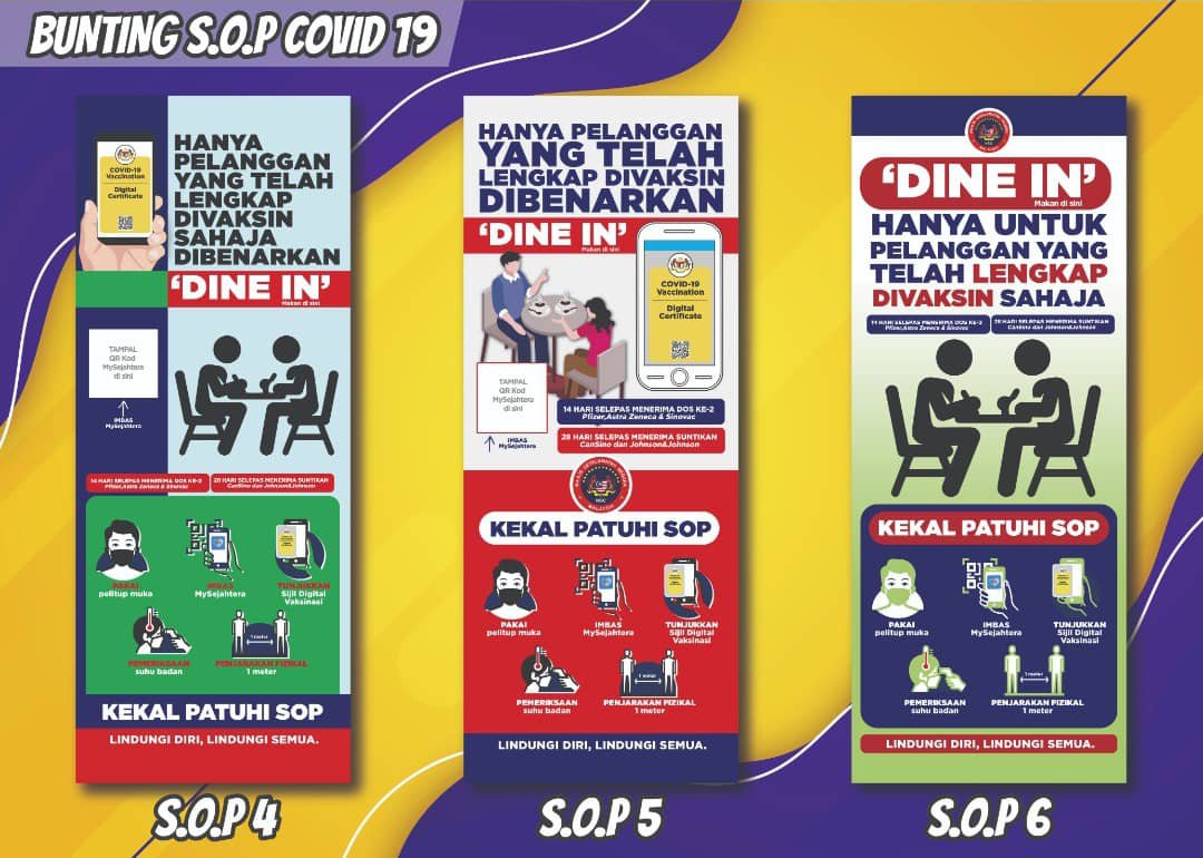Pada masa sama, pemilik premis kedai makan perlu memastikan individu yang memasuki premis untuk dine-in mesti menunjukkan sijil vaksinasi Covid-19, yang menunjukkan individu terbabit telah menerima vaksinasi lengkap.
