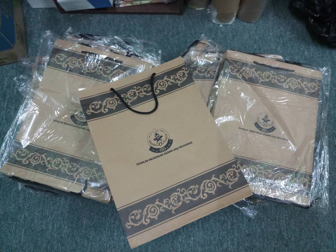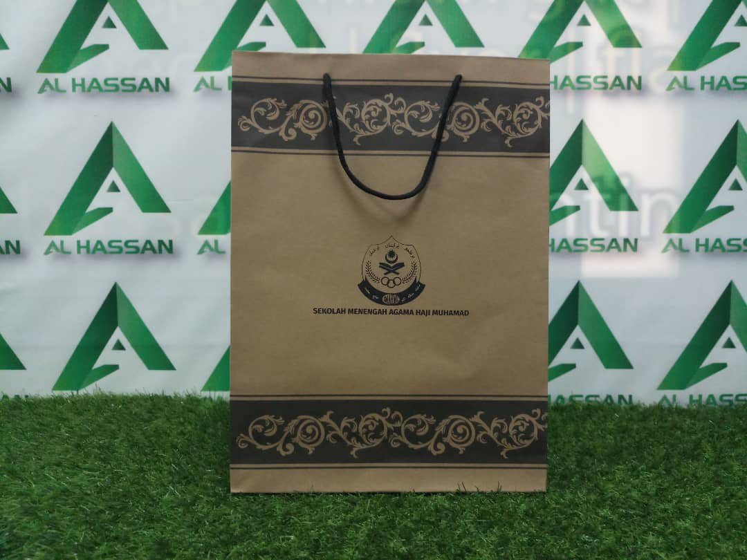 Saiz 33cm(H)×24(L)×8cm(W). Boleh tambah cetakan. Letak tulisan ke, atau letak logo sekolah, jabatan atau logo bisnes anda..nice!