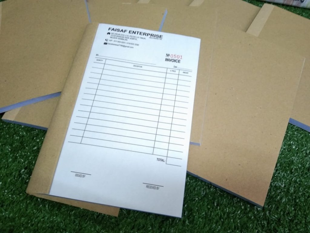 Boleh mulakan dengan upgrade buku invois, buku resit. Semua ini boleh custommade, boleh letak nama, logo, alamat dan semua info berkenaan bisnes anda!