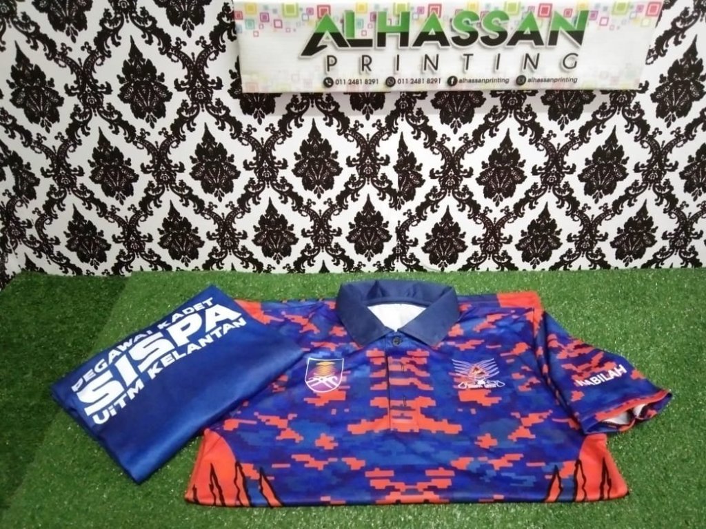 Kelebihan baju sublimation ini adalah tiada had warna kerana dicetak secara digital. Dan boleh print penuh depan dan belakang baju.