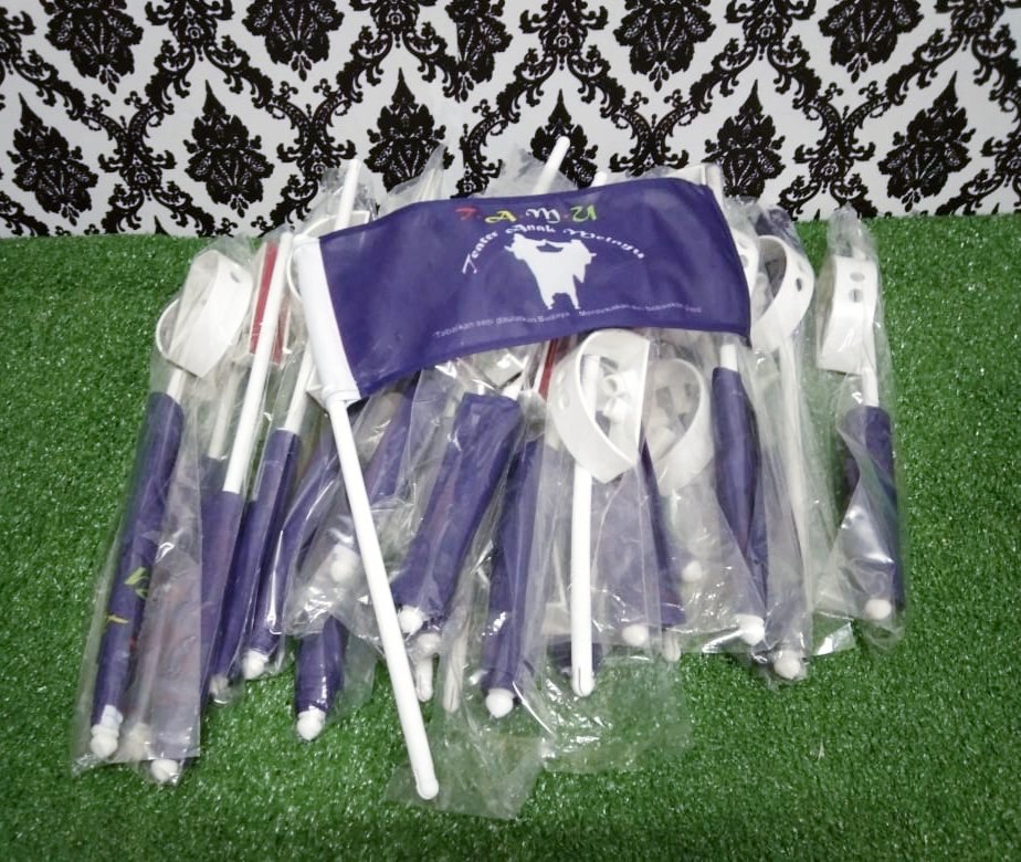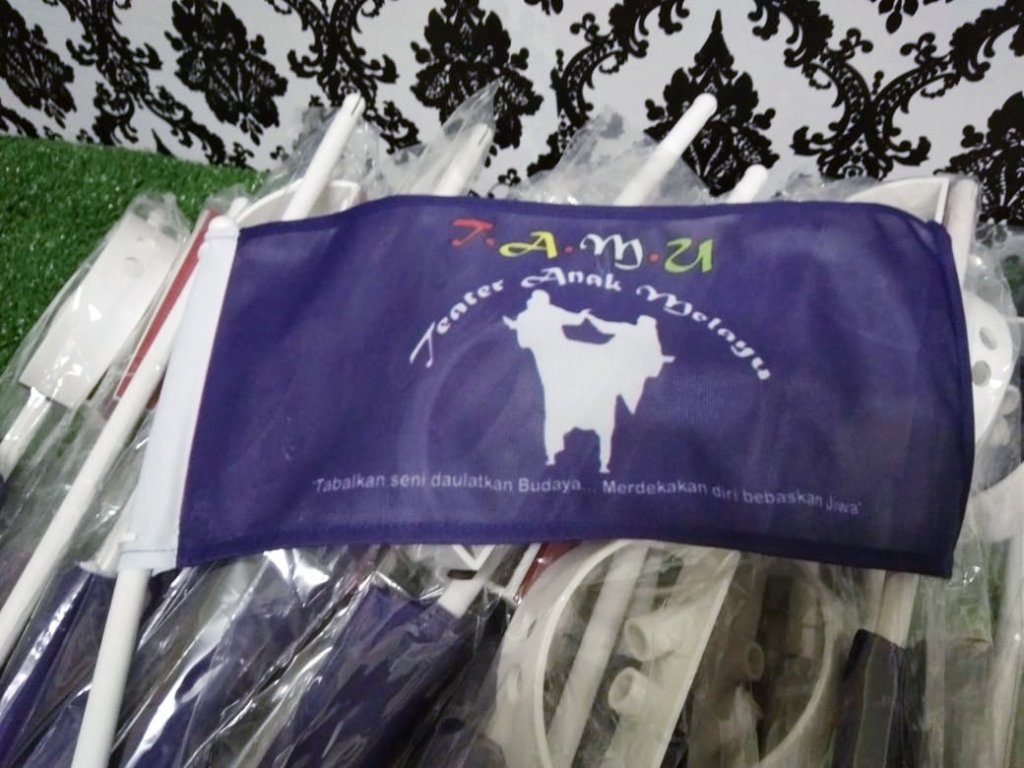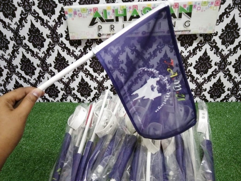 Minima order cuma 10 pcs sahaja. Bendera boleh custom…letak logo, nama pasukan dan apa sahaja yang anda nak cetak. Siap sekali dengan tapak bendera..!