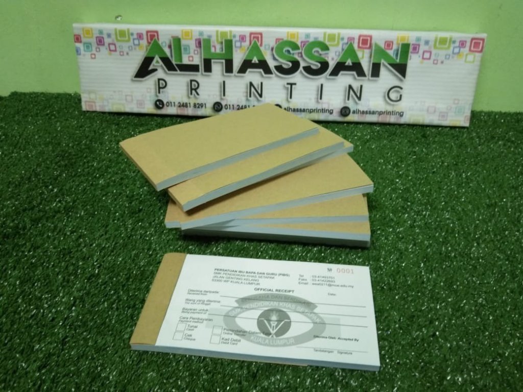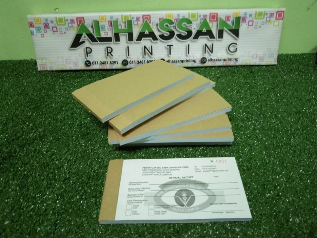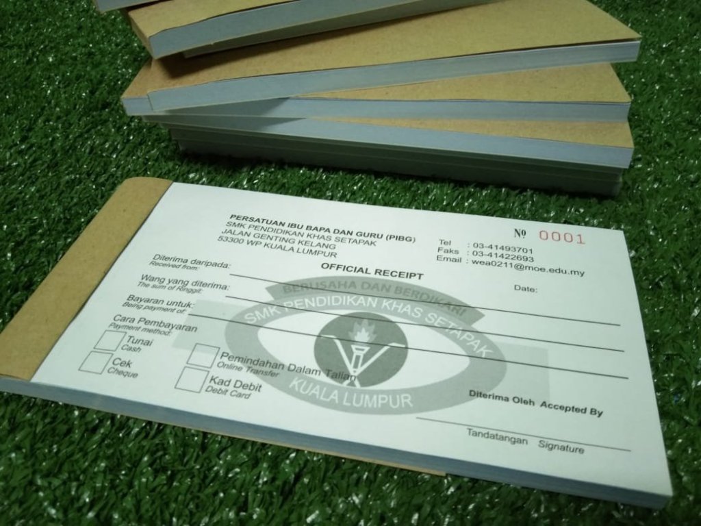 Custom buku resit boleh letak logo, alamat, nombor telefon dan lain-lain maklumat penting persatuan dan jabatan.