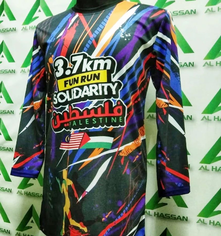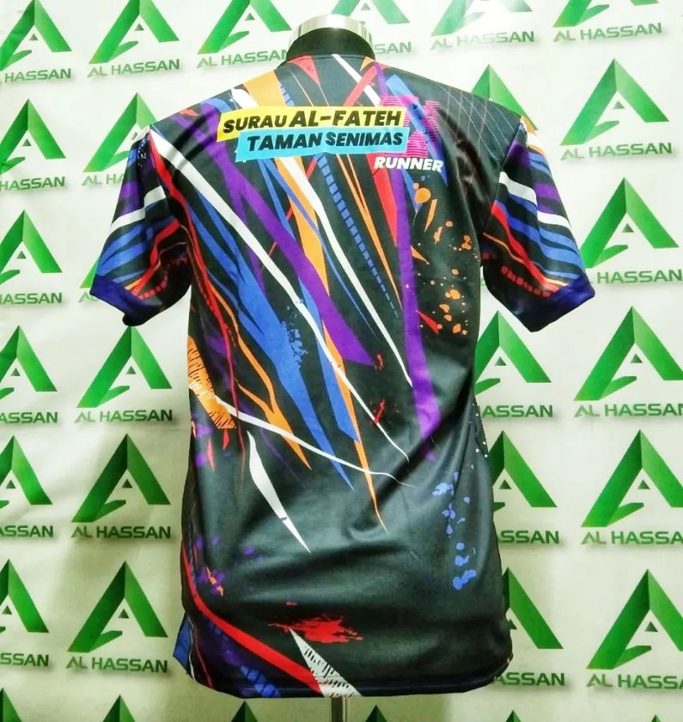 Kelebihan baju sublimation ini adalah tiada had warna kerana dicetak secara digital. Dan boleh print penuh depan dan belakang baju.