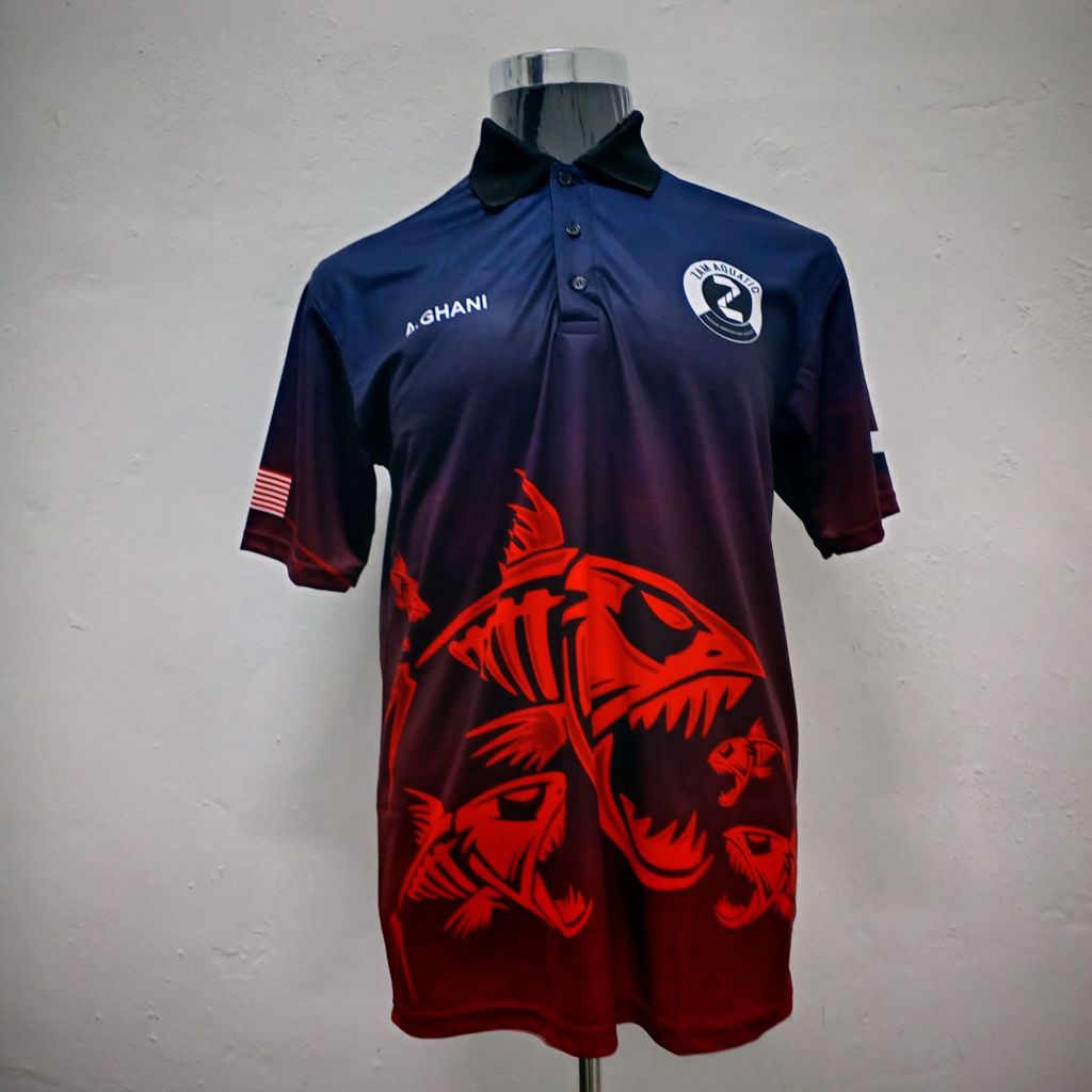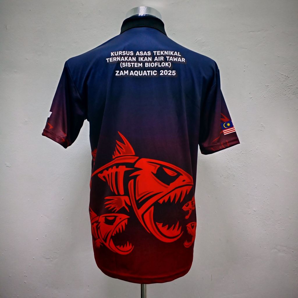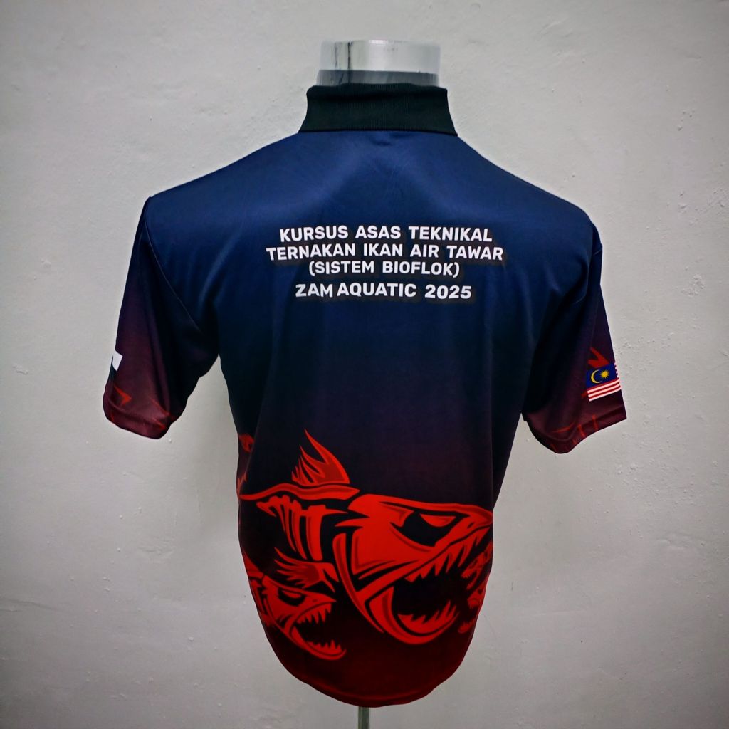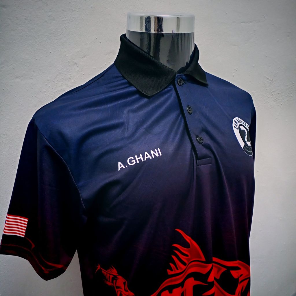 Teknik sublimation ini dicetak secara digital dan boleh di cetak penuh depan dan belakang baju.