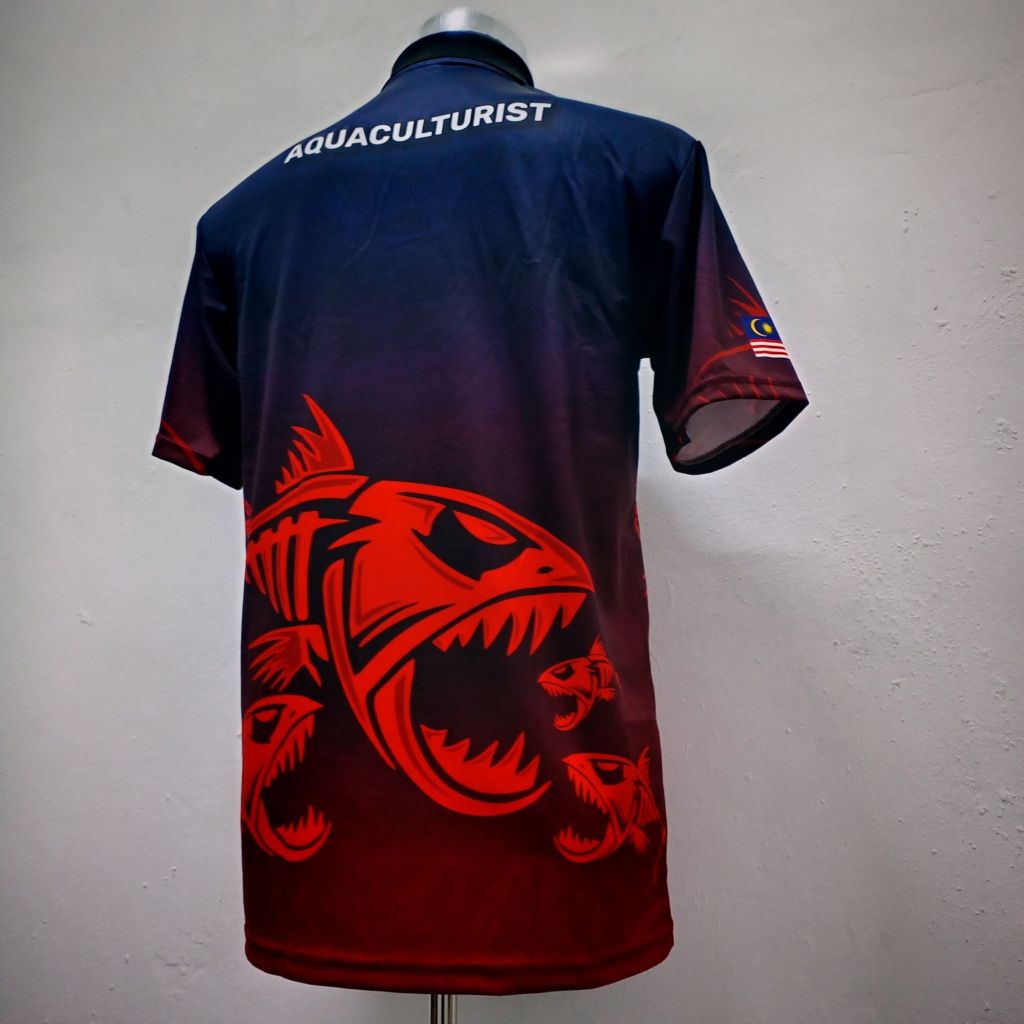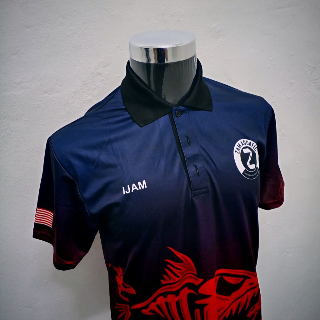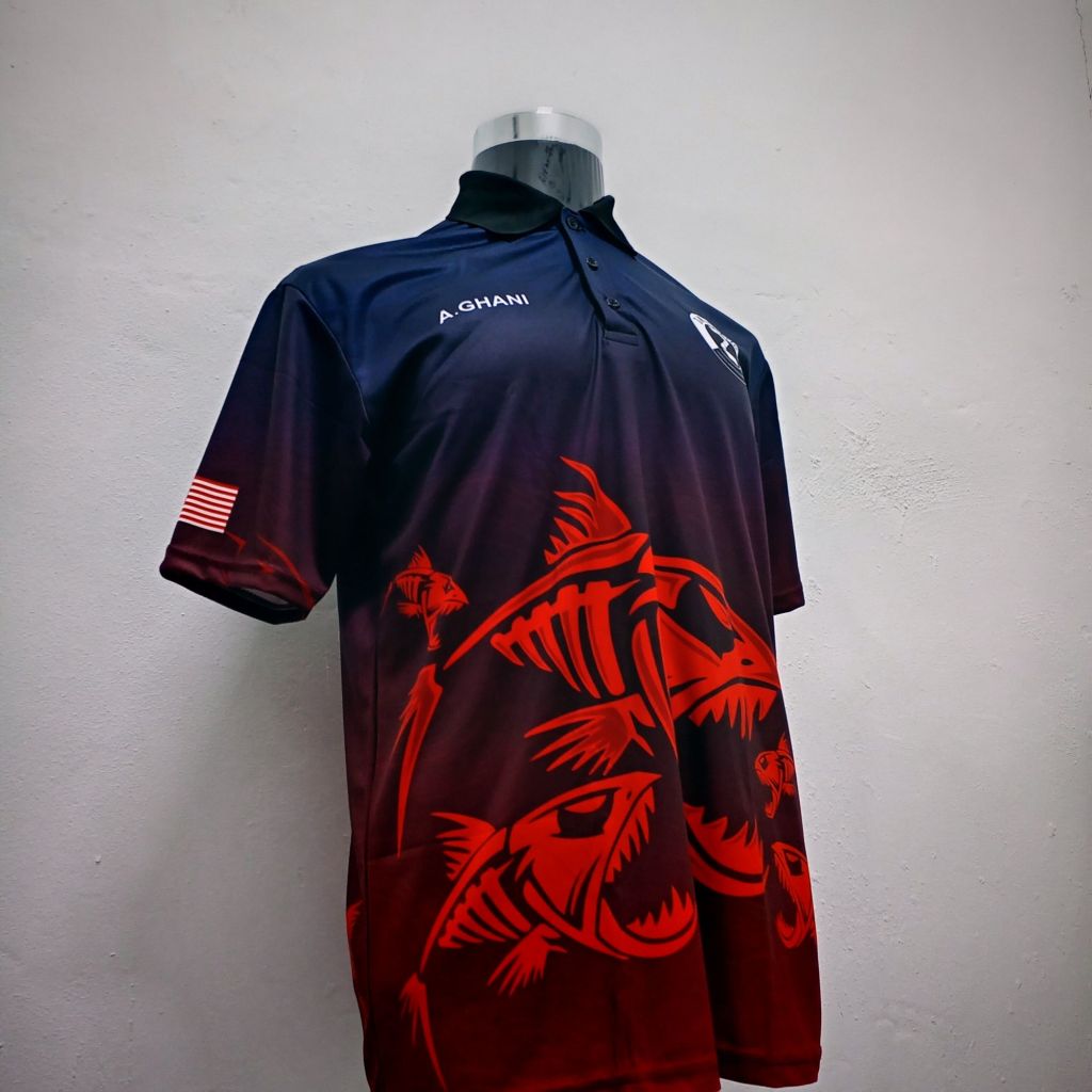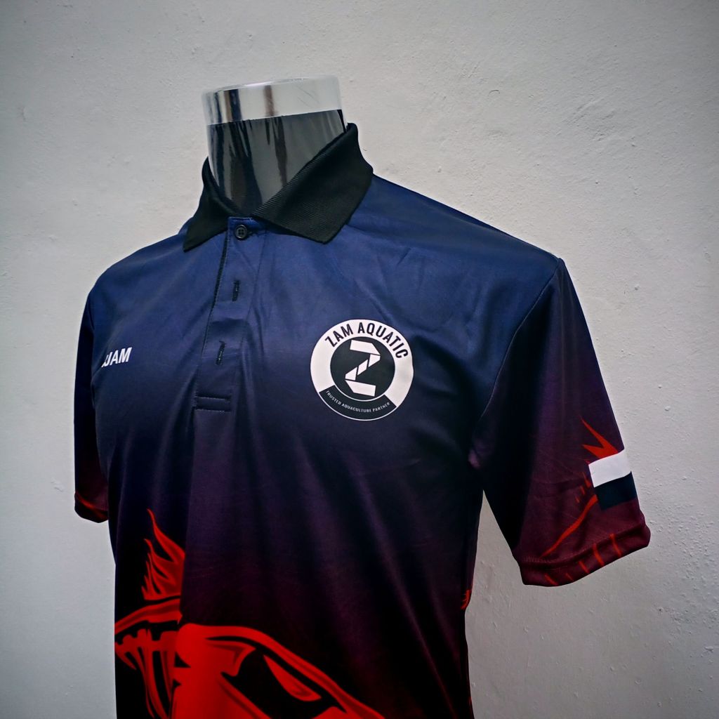 Teknik sublimation ini dicetak secara digital dan boleh di cetak penuh depan dan belakang baju.