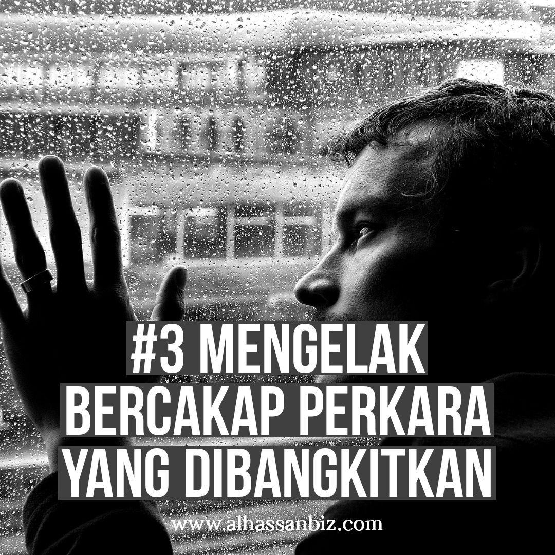3. Kita mengelak daripada bercakap berkenaan perkara yang dibangkitkan. Sebaliknya, kita mengata balik orang itu, dan kita tuduh dia pun bukan betul sangat. Dia pun ada buat macam-macam kesalahan juga.
